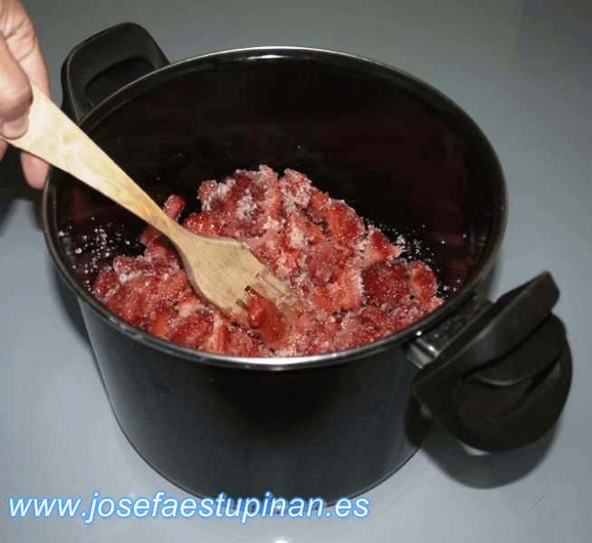 5. Pesa la misma cantidad de azúcar que de fresas.