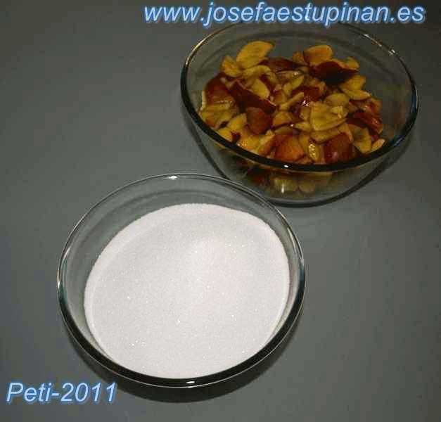 • Azúcar (la cantidad se determinará luego, tras limpiar, trocear y eliminar la semilla de la fruta)